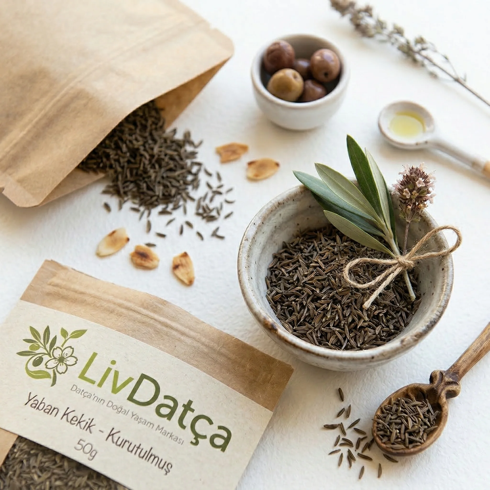 Datça'nın dağlarında kendiliğinden yetişen yaban kekik bitkisinin yapraklarının özenle toplanıp gölgede kurutulmasıyla elde edilen aromatik bir baharat. Yemeklere, salatalara ve soslara mükemmel bir lezzet katar.